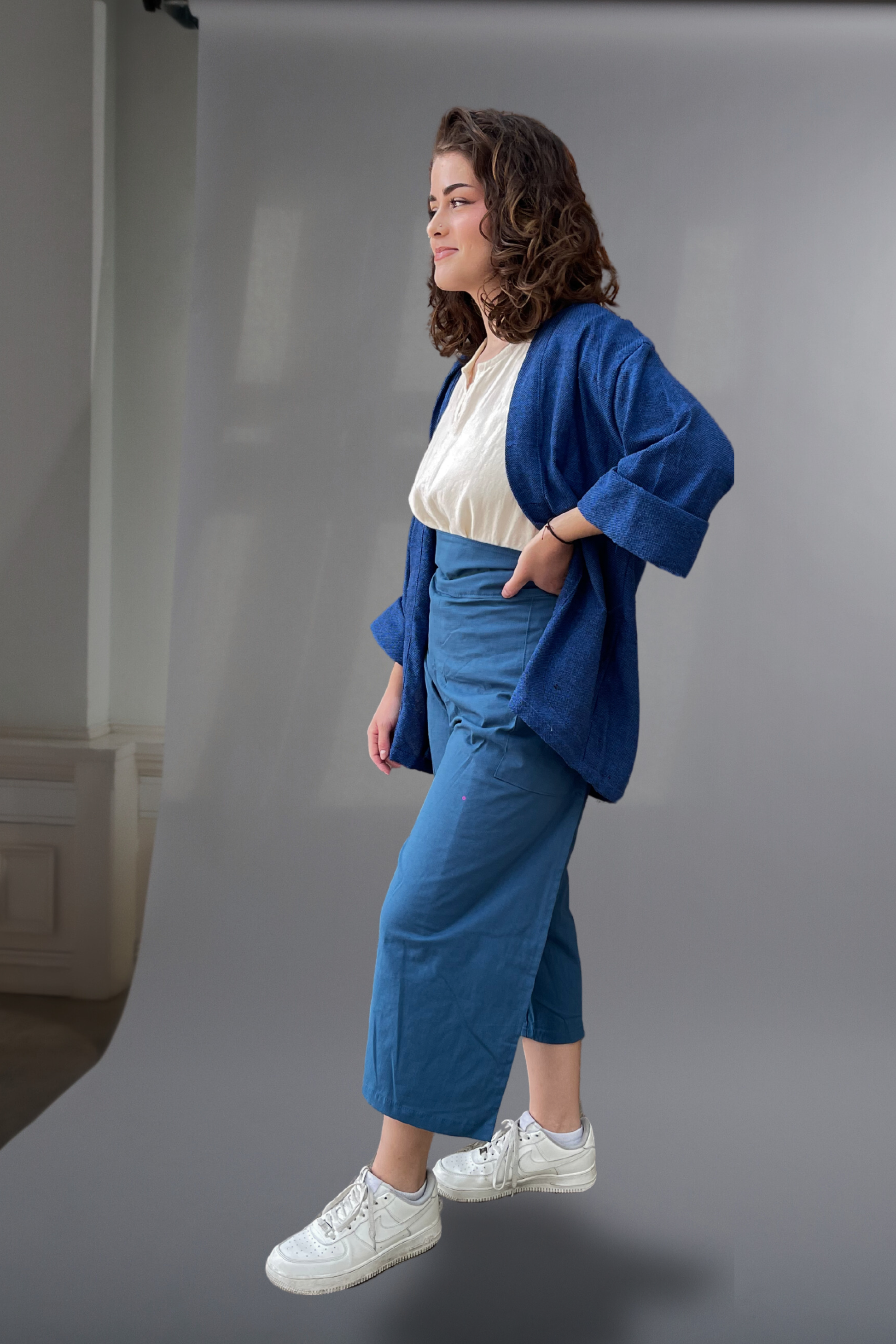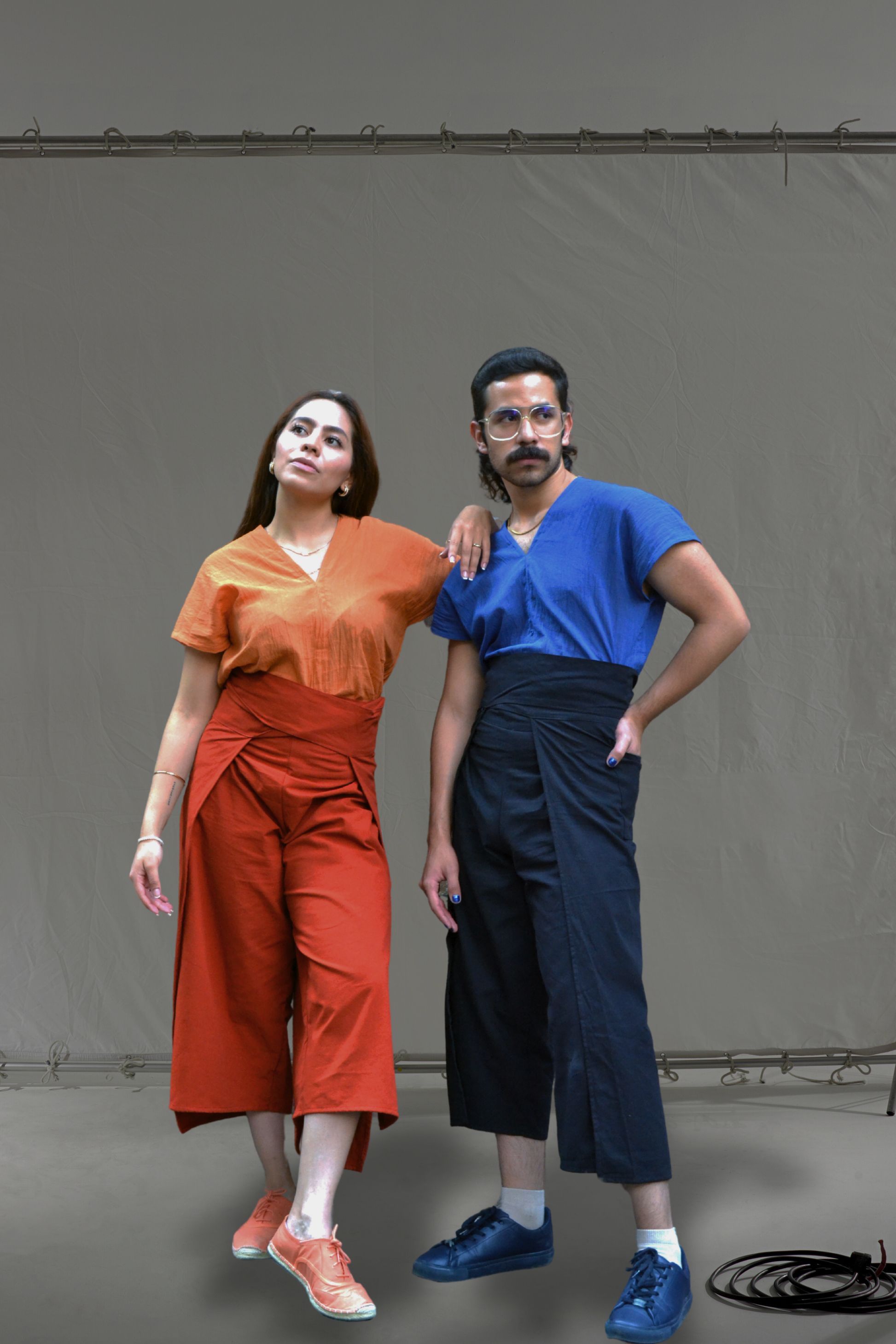 El Pantalón está hecho con tela industrial, confeccionado por un taller familiar en San Pablo Etla, Oaxaca.